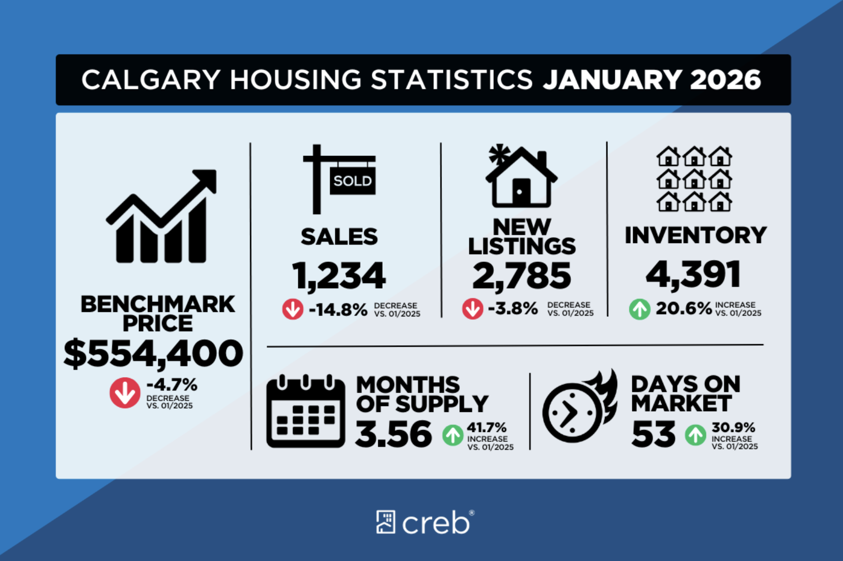 January brought a more measured pace to the Calgary market, especially in the apartment and row-home segments. We saw 1,234 total sales, which is about 15% lower than last year, but honestly, that lines up pretty closely with what we typically see after the holiday slowdown.