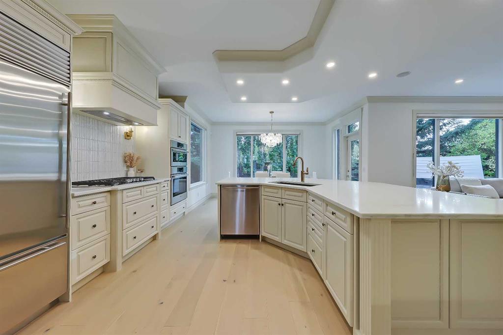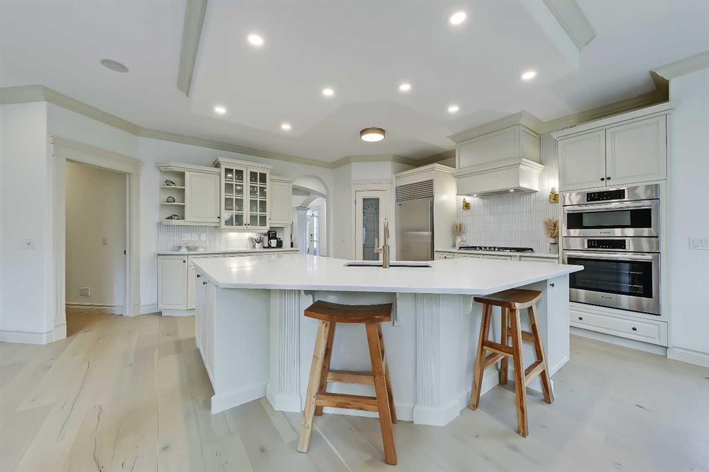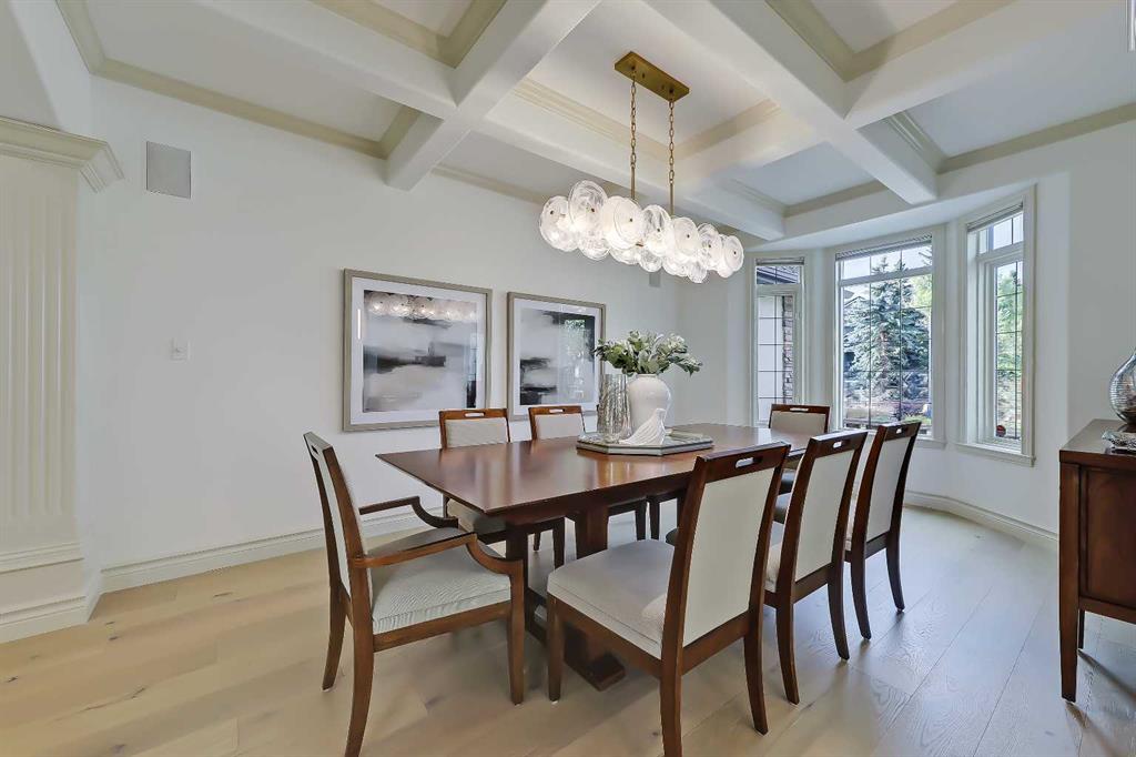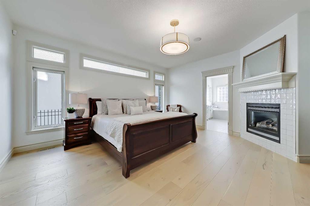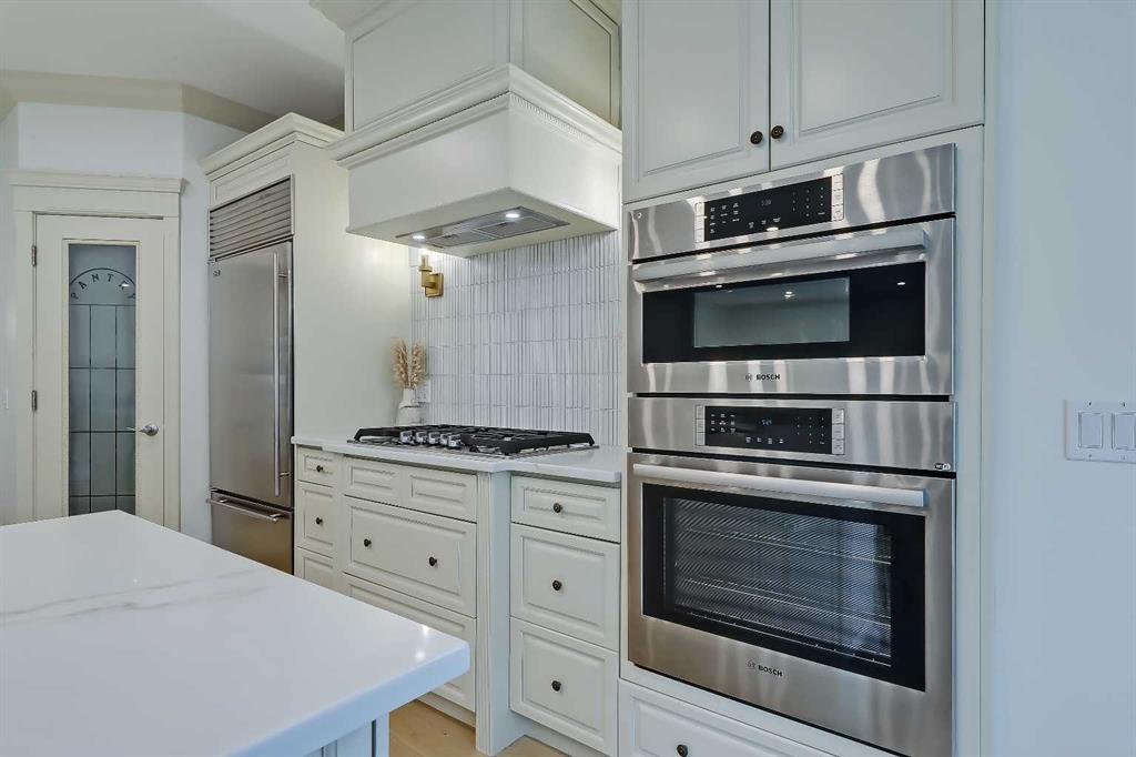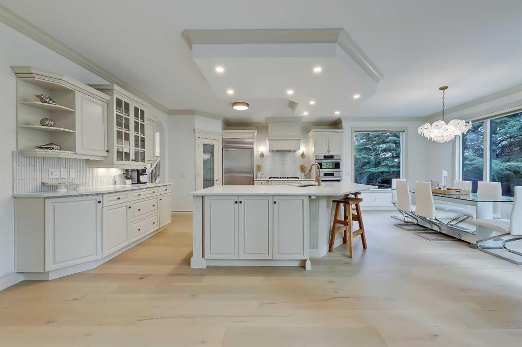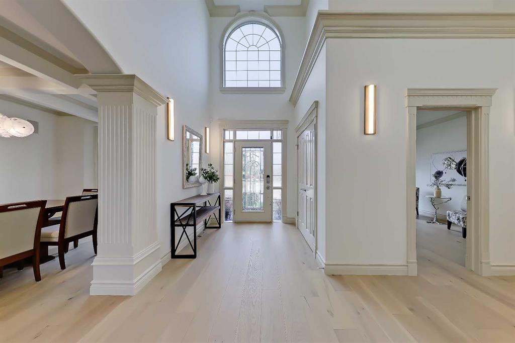 Discover elevated living in this NEWLY RENOVATED home in prestigious ASPEN ESTATES! Nestled on a quiet cul-de-sac, this former Elegant Series showhome offers exceptional craftsmanship & thoughtful updates throughout, featuring NEW HARDWOOD FLOORS, NEW INTERIOR & EXTERIOR PAINT, NEW LIGHTING FIXTURES, NEW FIREPLACE SURROUNDS, NEW BATHROOM TILE & COUNTERTOPS, new gutters/downspouts/fascia, new window sealing/panels/glazing beads, NEW DRIVEWAY STAINING & COATING, and a FULLY UPDATED KITCHEN w/ NEW BOSCH APPLIANCES, COUNTERTOPS, & BACKSPLASH! From the moment you step into the grand foyer w/ arched transom windows, you’ll be greeted by soaring 20-ft ceilings adorned w/ intricate crown mouldings and archways, setting an elegant tone for the entire home. Natural light floods the expansive living spaces, enhancing the sense of luxury in each room. The formal dining room, featuring coffered ceilings, is the perfect backdrop for sophisticated gatherings. The completely renovated kitchen is a chef’s delight, now boasting new hardwood floors, updated lighting, fresh paint, and new quartz counters and tile backsplash. California-washed cabinetry, a custom hood fan, a new gas cooktop, and the new Bosch appliances – including fridge and built-in wall oven/microwave – combine w/ a large central island and ample storage to create the ultimate culinary space. The adjacent family room, complete w/ a cozy fireplace and bright breakfast nook, provides a warm, inviting atmosphere for everyday living. The main floor also features your newly updated primary bedroom, complete w/ a fireplace, custom walk-in closet, and a FULLY RENOVATED ENSUITE w/ a jetted soaker tub and glass-enclosed shower with all new tile throughout! A private office near the entrance offers the ideal work-from-home setup w/ a built-in desk and gorgeous views of the yard, while the laundry/mudroom off the oversized TRIPLE CAR ATTACHED GARAGE is exceptionally convenient. Upstairs, three generously sized bedrooms await, each w/ its unique appeal. One features a private 3-pc ensuite, while the other two share a Jack-and-Jill 4-pc bathroom. The finished basement is designed for entertainment – enjoy movie nights in the media room, sip your favourite vintage from the wine cellar, or host guests in the bar area w/ a new Samsung fridge. Additional basement highlights include two bedrooms, a fitness room, and a 4-pc bath. Outside, the beautifully landscaped backyard, complete w/ underground sprinklers, offers ultimate privacy w/ no rear neighbours and a lovely patio space. Set in Aspen Woods, this home is surrounded by scenic walking paths and parks, providing a serene escape from city life. Aspen Woods is one of Calgary’s most sought-after communities, known for its proximity to top-ranked schools such as Webber Academy, Rundle College, and Dr. Roberta Bondar Elementary. With quick access to downtown, the LRT, local amenities, and the mountains, this property provides the perfect blend of luxury, convenience, and tranquillity!
