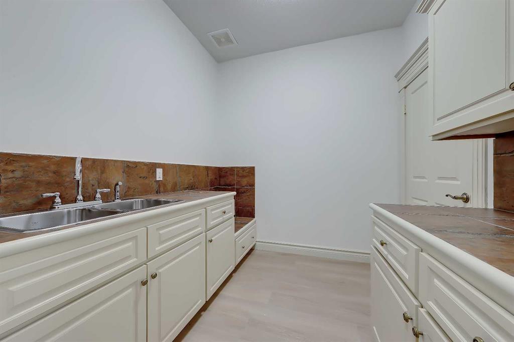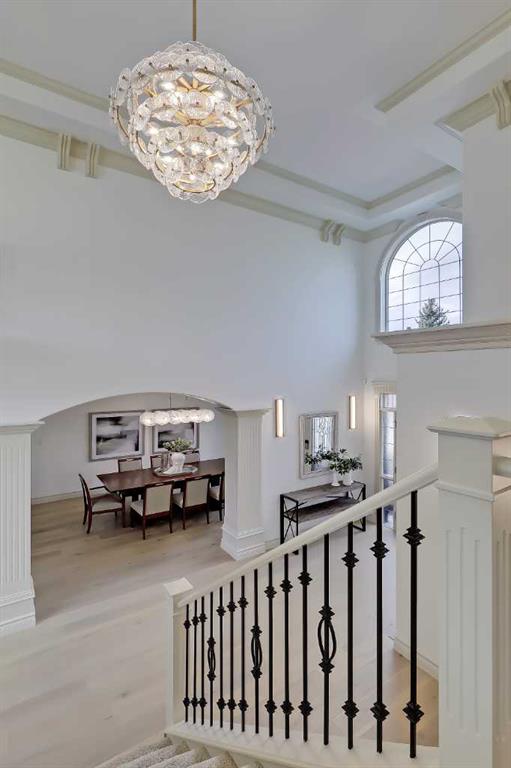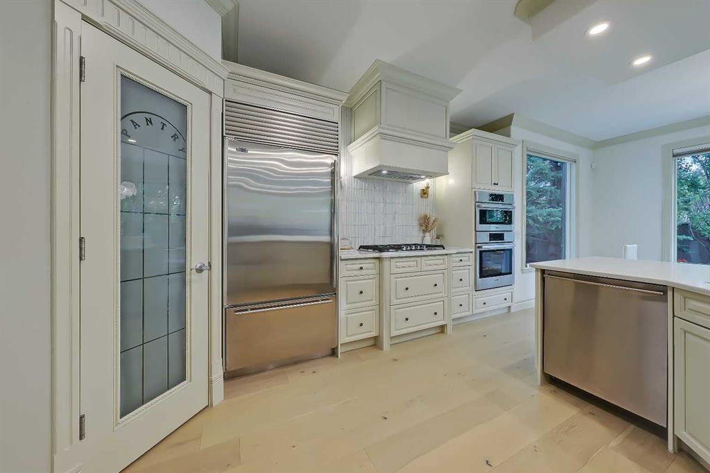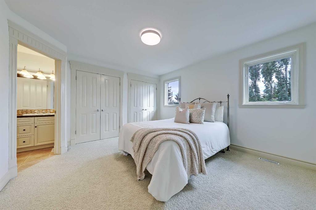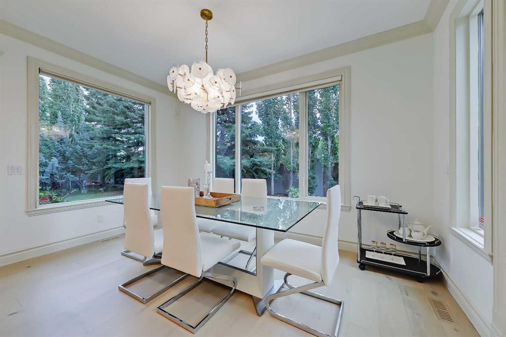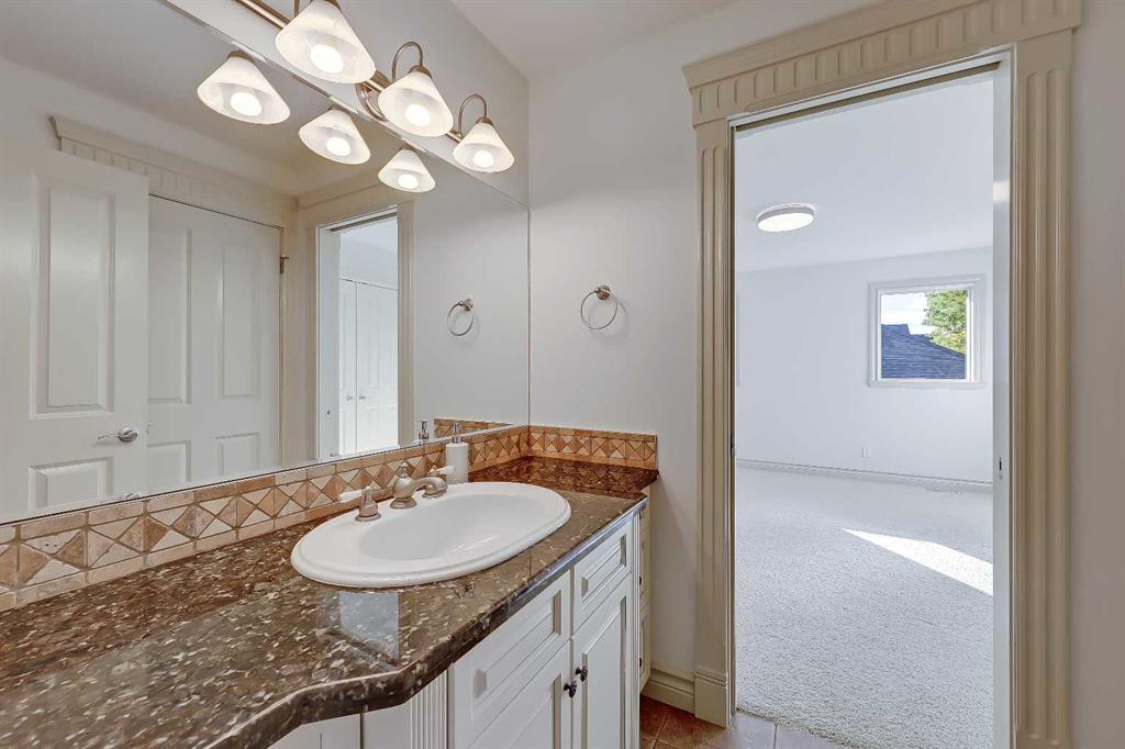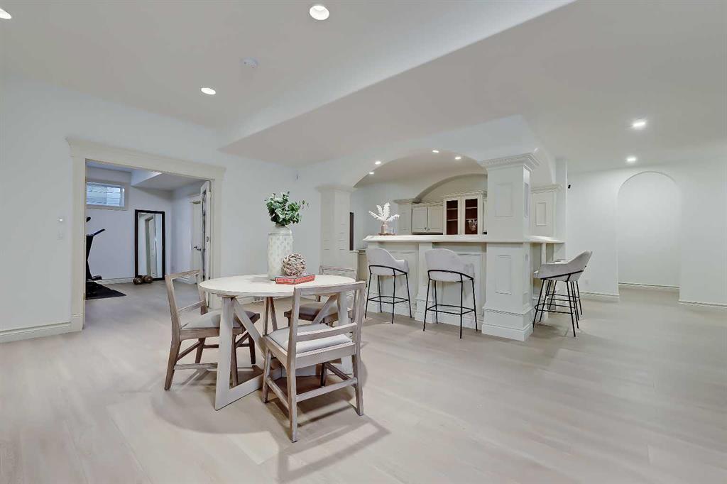 Discover elevated living in this NEWLY RENOVATED home in prestigious ASPEN ESTATES! Nestled on a quiet cul-de-sac, this former Elegant Series showhome offers exceptional craftsmanship & thoughtful updates throughout, featuring NEW HARDWOOD FLOORS, NEW INTERIOR & EXTERIOR PAINT, NEW LIGHTING FIXTURES, NEW FIREPLACE SURROUNDS, NEW BATHROOM TILE & COUNTERTOPS, new gutters/downspouts/fascia, new window sealing/panels/glazing beads, NEW DRIVEWAY STAINING & COATING, and a FULLY UPDATED KITCHEN w/ NEW BOSCH APPLIANCES, COUNTERTOPS, & BACKSPLASH! From the moment you step into the grand foyer w/ arched transom windows, you’ll be greeted by soaring 20-ft ceilings adorned w/ intricate crown mouldings and archways, setting an elegant tone for the entire home. Natural light floods the expansive living spaces, enhancing the sense of luxury in each room. The formal dining room, featuring coffered ceilings, is the perfect backdrop for sophisticated gatherings. The completely renovated kitchen is a chef’s delight, now boasting new hardwood floors, updated lighting, fresh paint, and new quartz counters and tile backsplash. California-washed cabinetry, a custom hood fan, a new gas cooktop, and the new Bosch appliances – including fridge and built-in wall oven/microwave – combine w/ a large central island and ample storage to create the ultimate culinary space. The adjacent family room, complete w/ a cozy fireplace and bright breakfast nook, provides a warm, inviting atmosphere for everyday living. The main floor also features your newly updated primary bedroom, complete w/ a fireplace, custom walk-in closet, and a FULLY RENOVATED ENSUITE w/ a jetted soaker tub and glass-enclosed shower with all new tile throughout! A private office near the entrance offers the ideal work-from-home setup w/ a built-in desk and gorgeous views of the yard, while the laundry/mudroom off the oversized TRIPLE CAR ATTACHED GARAGE is exceptionally convenient. Upstairs, three generously sized bedrooms await, each w/ its unique appeal. One features a private 3-pc ensuite, while the other two share a Jack-and-Jill 4-pc bathroom. The finished basement is designed for entertainment – enjoy movie nights in the media room, sip your favourite vintage from the wine cellar, or host guests in the bar area w/ a new Samsung fridge. Additional basement highlights include two bedrooms, a fitness room, and a 4-pc bath. Outside, the beautifully landscaped backyard, complete w/ underground sprinklers, offers ultimate privacy w/ no rear neighbours and a lovely patio space. Set in Aspen Woods, this home is surrounded by scenic walking paths and parks, providing a serene escape from city life. Aspen Woods is one of Calgary’s most sought-after communities, known for its proximity to top-ranked schools such as Webber Academy, Rundle College, and Dr. Roberta Bondar Elementary. With quick access to downtown, the LRT, local amenities, and the mountains, this property provides the perfect blend of luxury, convenience, and tranquillity!