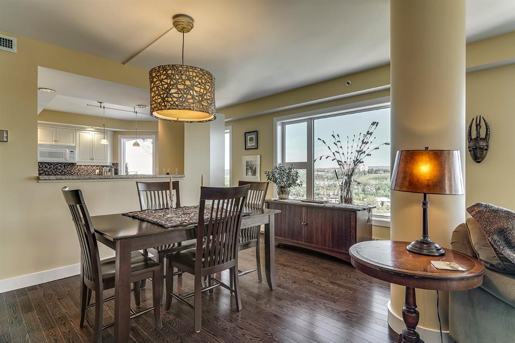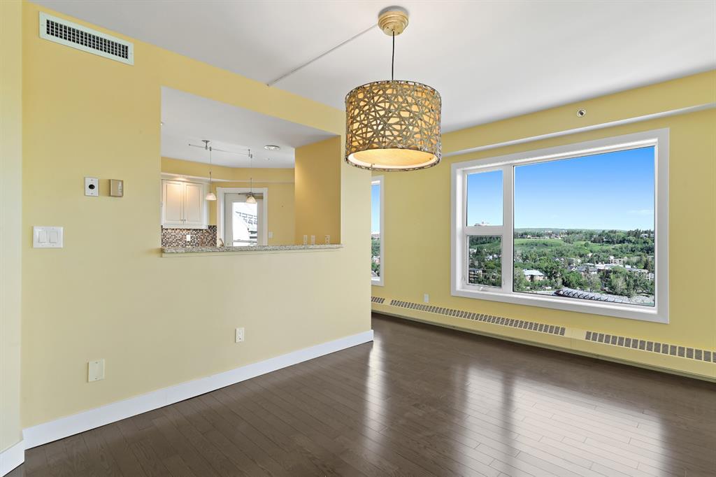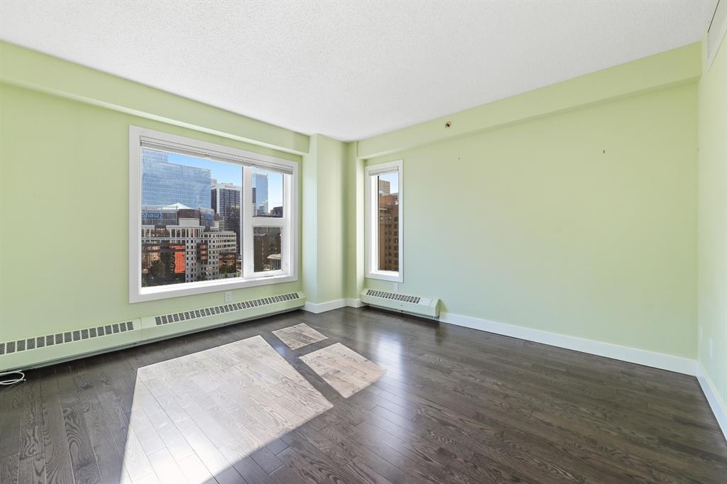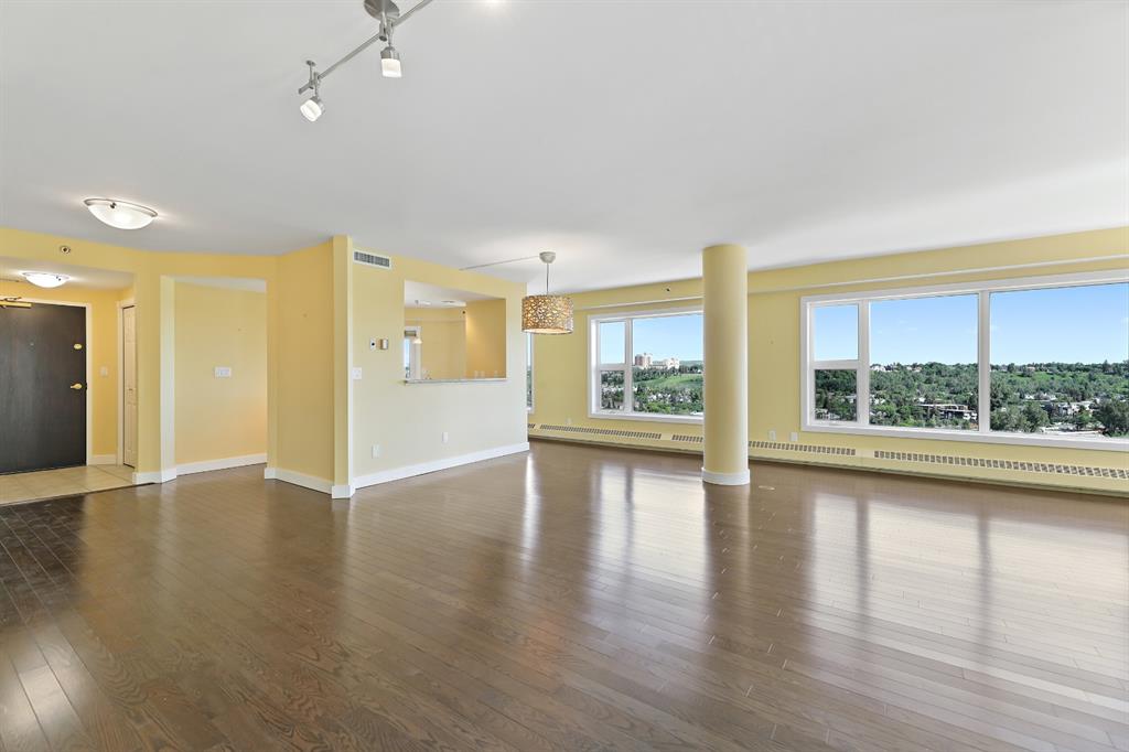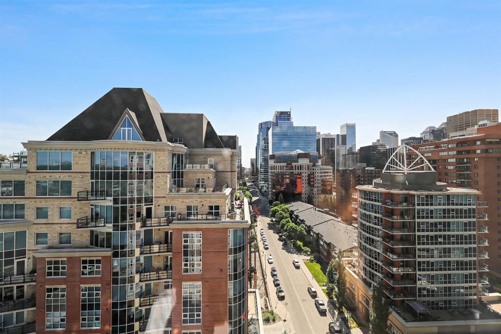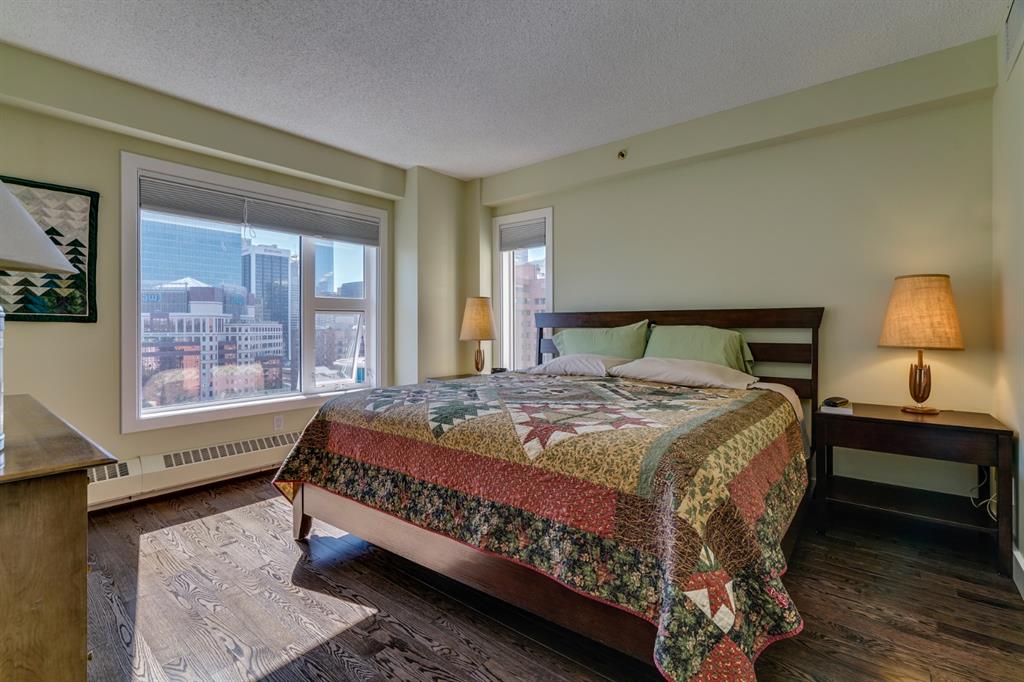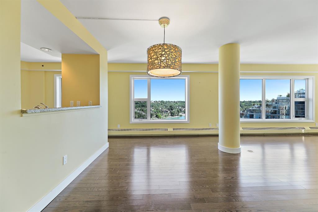 Luxury condo living at it’s finest! Extraordinary northeast corner location with spectacular 14th floor views of the Bow River, Peace Bridge, Parks and City! This upgraded gem has a very entertaining open floor plan with large picturesque windows that provide plenty of natural light while enhancing the great views from every room! This one has it all with 2 bedrooms, Den/Flex area, 2 balconies, 2 bathrooms, 2 titled parking stalls, titled storage locker, central air conditioning, gorgeous hardwood flooring throughout, stone facing gas fireplace, large separate laundry room with storage, new high end washer/dryer and spacious tile entrance way to greet guests. Beautiful open chef style kitchen with center Island, large pass-thru to dining area, new fridge, granite counter tops, tasteful back splash and quick access to the large covered balcony with stunning views! Spacious Primary bedroom has bright southeast corner windows with city views, large walk-in closet, 5 pce enuite bathroom with shower stall, double sink vanity and large soaker tub to relax in! Guest bedroom has built-in murphy bed with a city view, 2nd covered balcony has bbq gas line and owner has installed screen protectors on both balconies to keep them clean and meticulous, but they can also be taken down very easily. Home is vacant for a quick possession but seller is flexible! The Chateau La Caille is an elegant and luxurious building with quiet full concrete construction, welcoming concierge service, beautiful Grand entrance lobby with comfortable seating areas & fireplace, underground car wash bay and is located on a quiet no-thru traffic cul-de-sac in West Eau Claire. The location is exceptional with close proximity to the amazing upgraded walking/biking/jogging pathway system, beautiful Prince’s Island Park, Bow River and Lagoon, Peace Bridge, Eau Claire Market Shops, Cinemas, many fine Restaurants and Cafés, Plus 15 Skywalk System, LRT & Transportation and just a short walk to Kensington Shops, Safeway and Calgary’s vibrant city center. This incredible lifestyle and ultimate downtown urban living can be yours! Call for your private viewing today!