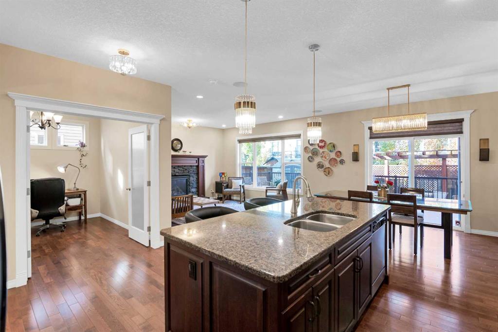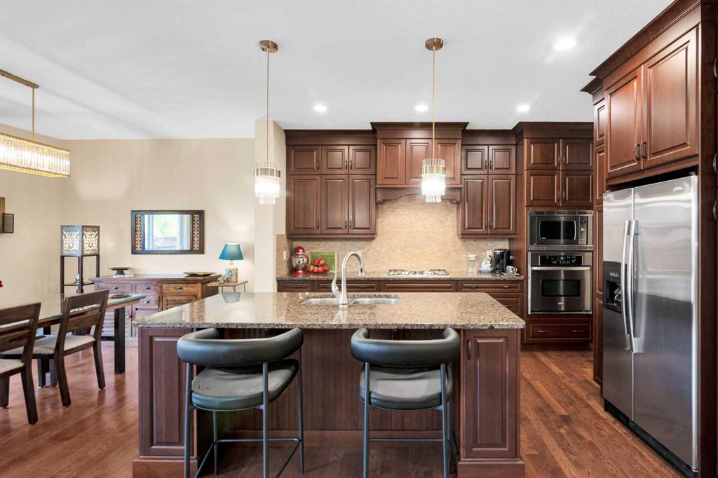 Welcome to 141 Aspenshire Crescent SW, a charming and meticulously maintained family home in Calgary’s prestigious Aspen Woods community. This air-conditioned, four-bedroom gem is nestled on a quiet street across from Bumble Bee Park, within walking distance of some of Calgary’s top-rated schools. With over 3,000 sq ft of beautifully designed living space, this home combines elegance and functionality. The open-concept main floor is bathed in natural light, featuring 9’ ceilings and engineered hardwood floors. The spacious great room, with its cozy gas fireplace, flows effortlessly into the dining area—perfect for both intimate meals and large gatherings. The chef’s kitchen is a highlight, offering extended-height shaker cabinetry, granite countertops, stainless steel appliances (including a gas cooktop, wall oven, and built-in microwave), and a large island with seating. A walk-through pantry adds convenience and leads to the mudroom. Upstairs, a spacious bonus room with vaulted ceilings provides a versatile space for movie nights or play. The luxurious primary bedroom is a retreat, complete with recessed ceiling details and a spa-inspired 6-piece ensuite, featuring a deep soaker tub, oversized shower, dual sinks, water closet, and a walk-in closet with built-ins. Two additional bedrooms, a full bath, and an upstairs laundry room add to the convenience. The fully developed basement offers even more living space with a family room pre-wired for sound, a fourth bedroom, a 4-piece bath, and a dedicated storage room. Outside, the beautifully landscaped backyard is designed for privacy and relaxation. Surrounded by mature trees and shrubs, the yard includes a large deck for outdoor dining, a stone patio, and a pergola—perfect for cozy evenings. With minimal maintenance, the yard always looks its best. This home includes thoughtful upgrades like A/C, a central vacuum system, granite countertops, and elegant blinds throughout. Located near downtown Calgary, Stoney Trail, and the Rocky Mountains, this home offers easy access to premium shopping, dining, parks, and recreational areas. Nearby schools include Webber Academy, Rundle College, Dr. Roberta Bondar Elementary, and Ernest Manning High School. Whether you’re seeking urban convenience or outdoor adventure, this home delivers the best of both worlds.