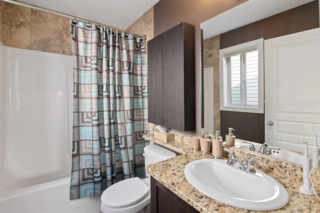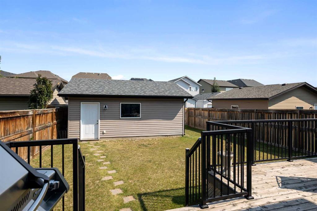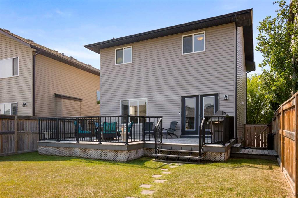 Upon arrival, you’re greeted by the pleasing aesthetic of the low-maintenance rockscape yard, attractive frontage, and a welcoming porch. The bright, vaulted entryway invites you into the open main floor which boasts 9’ ceilings, a stylish and functional kitchen with stainless steel appliances and marble counters, as well as a spacious living room with gas fireplace. The main floor also includes a flex room, which currently serves as an office, and powder room. Ascending the staircase appointed with attractive wood banisters, the main bedroom includes a walk-in closet, built-in wardrobe, and full ensuite. Two additional bedrooms and another full bathroom with matching granite counter complete the second level. The fully-developed basement utilizes top-notch finishing which provide a family room, bedroom, and sizeable bathroom with an elegant shower stall. The basement also includes a separate storage room. Utilities as well as the washer/dryer and additional storage space are tucked away out-of-sight. The extra large rear deck area with gas hook-up are perfect for BBQing or entertaining in the unspoiled, fully-fenced back yard, which could be landscaped to suit your specific tastes. A double gate with removable post beside the two-car garage provides optionality for additional car, small RV, or boat parking.