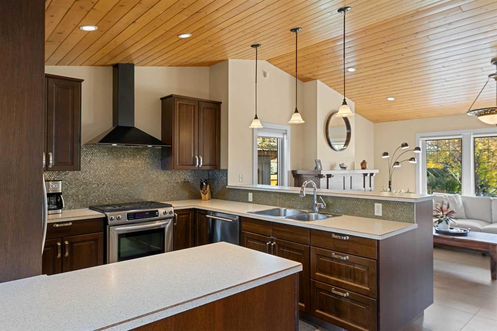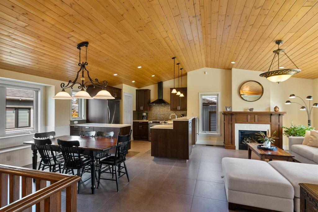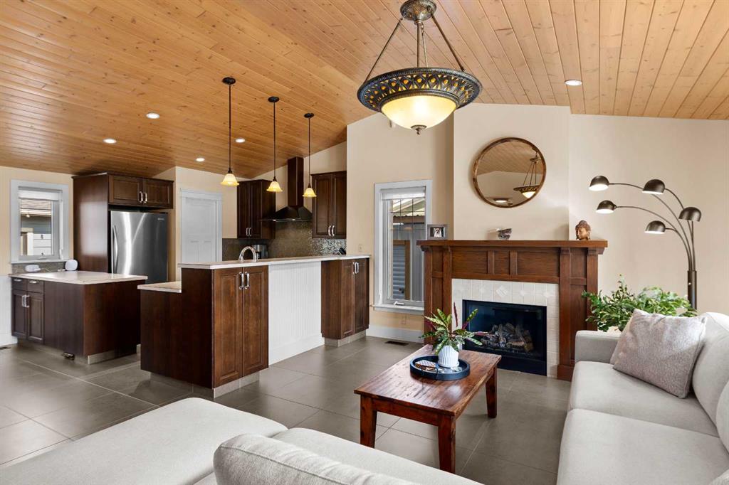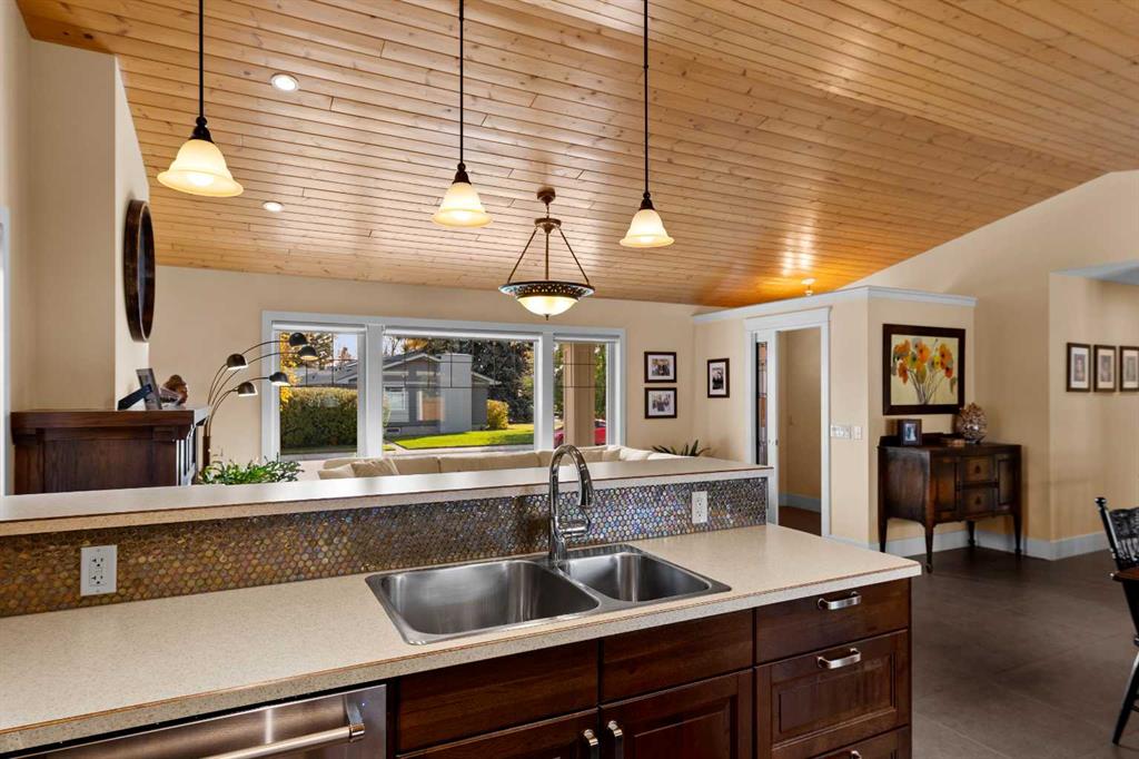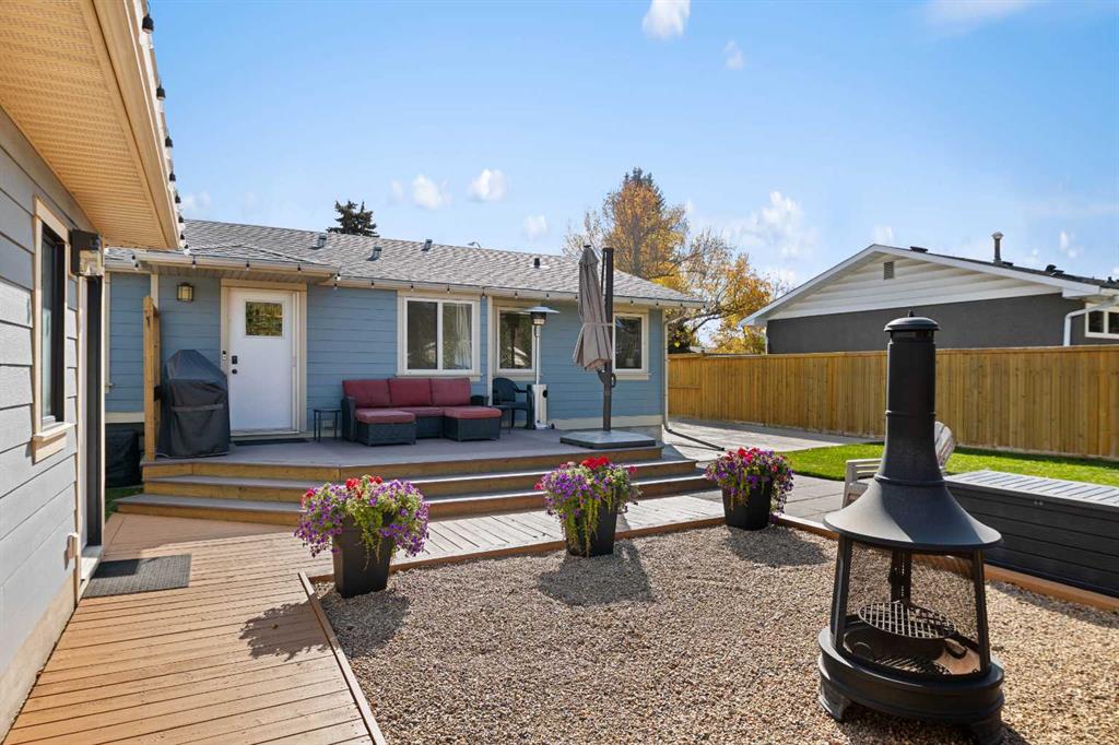 Are you in search of a spacious bungalow boasting a sizeable west-facing backyard, tucked away in a tranquil crescent within one of Calgary’s most sought-after inner-city neighbourhoods? Your search ends here. Positioned on an impressive 70′ x 100′ lot, this meticulously reimagined 1363 sq/ft open-concept bungalow exudes a blend of elegance and functionality. This residence has been expertly crafted with vaulted ceilings in the kitchen, dining, and family areas, creating an ambiance of openness and refinement. The kitchen seamlessly integrates abundant cabinet space, a raised eating bar, and top-of-the-line KitchenAid appliances, ensuring both utility and style. A convenient half bath adjacent to the kitchen adds a thoughtful touch. The family room boasts a fireplace and offers ample space for a generously proportioned sectional sofa, promising cozy gatherings and leisure. The primary bedroom showcases dual closets and ample room for a king-sized bed. The ensuite bath, adorned with a five-piece ensemble, features dual sinks, a lavish soaker tub, and an oversized glass shower. Two additional generously sized bedrooms and a three-piece bathroom complement the main floor, ensuring comfort for family and guests. Descending to the professionally developed lower level, one is greeted by a spacious family room with a fireplace, an office space, a sizeable bedroom, and a well-appointed four-piece bath. Additionally, the lower level houses a laundry area and expansive fitness/storage spaces, offering versatility and functionality. This residence is enriched with an array of upgrades, including air conditioning, low-e windows, blown-in foam insulation, newer high-efficiency furnace, newer H2O tank, attesting to its commitment to modern comfort and efficiency. The landscaped yard is a haven featuring expansive front and back decks, ideal for outdoor gatherings and relaxation. Further enhancing this property are three storage sheds, discreet RV parking, and an oversized heated double garage, addressing all storage needs. Book your showing and make this exceptional property yours.