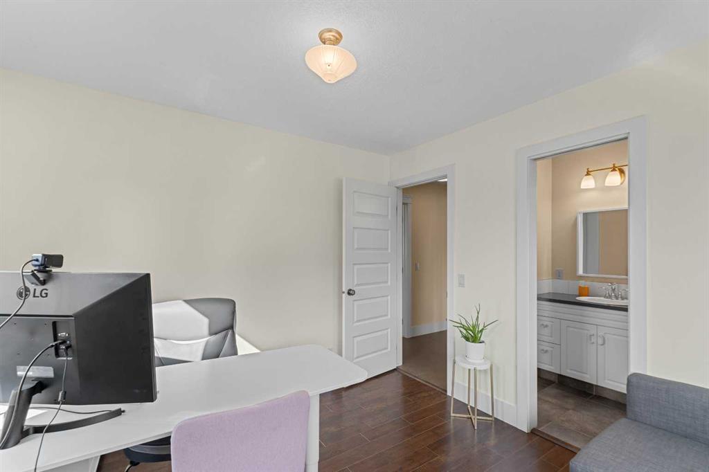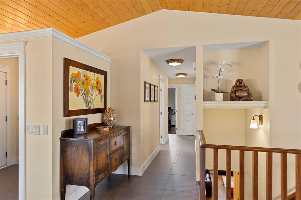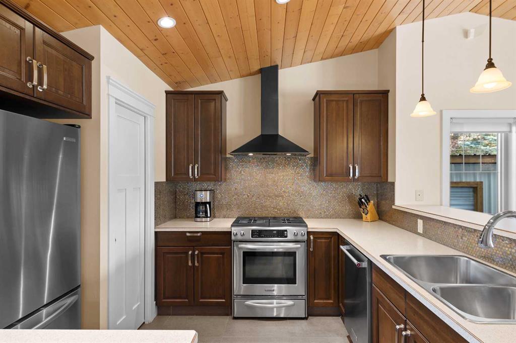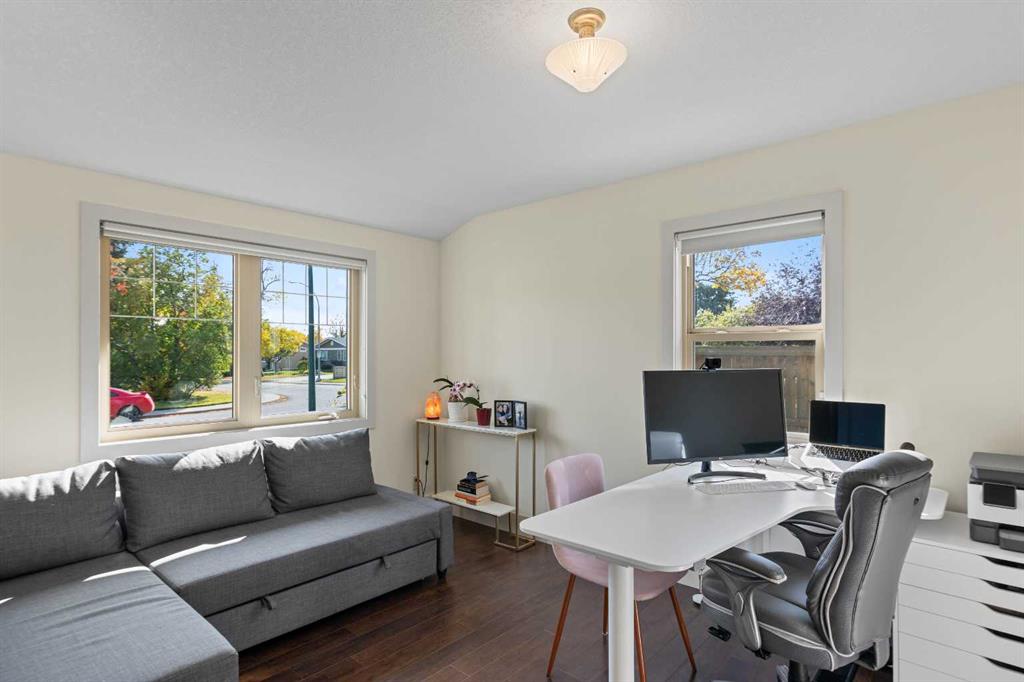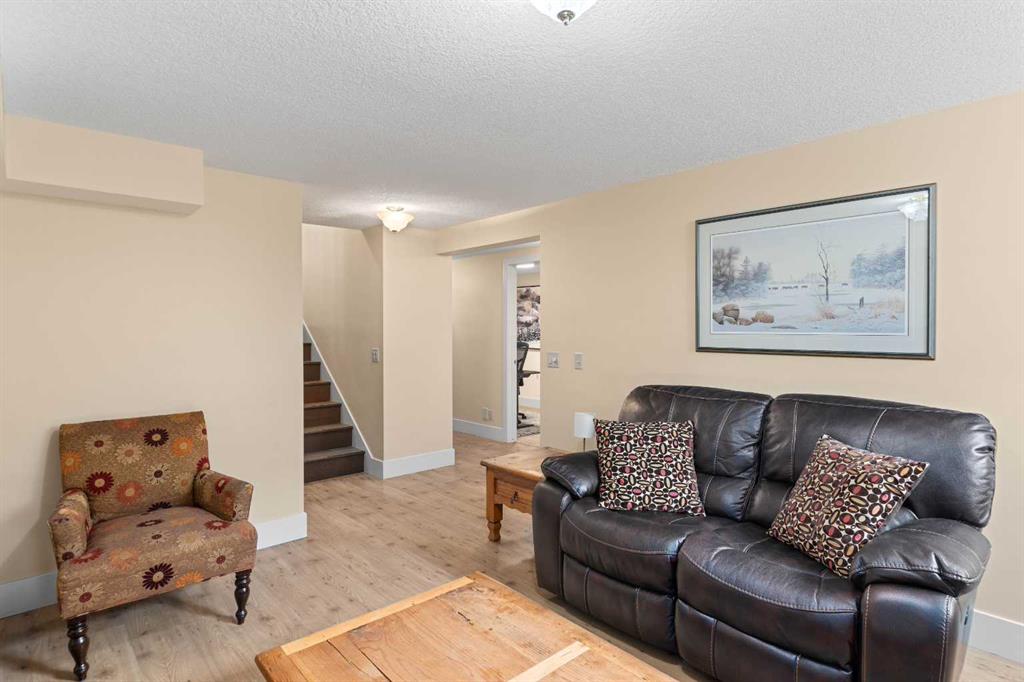 Are you in search of a spacious bungalow boasting a sizeable west-facing backyard, tucked away in a tranquil crescent within one of Calgary’s most sought-after inner-city neighbourhoods? Your search ends here. Positioned on an impressive 70′ x 100′ lot, this meticulously reimagined 1363 sq/ft open-concept bungalow exudes a blend of elegance and functionality. This residence has been expertly crafted with vaulted ceilings in the kitchen, dining, and family areas, creating an ambiance of openness and refinement. The kitchen seamlessly integrates abundant cabinet space, a raised eating bar, and top-of-the-line KitchenAid appliances, ensuring both utility and style. A convenient half bath adjacent to the kitchen adds a thoughtful touch. The family room boasts a fireplace and offers ample space for a generously proportioned sectional sofa, promising cozy gatherings and leisure. The primary bedroom showcases dual closets and ample room for a king-sized bed. The ensuite bath, adorned with a five-piece ensemble, features dual sinks, a lavish soaker tub, and an oversized glass shower. Two additional generously sized bedrooms and a three-piece bathroom complement the main floor, ensuring comfort for family and guests. Descending to the professionally developed lower level, one is greeted by a spacious family room with a fireplace, an office space, a sizeable bedroom, and a well-appointed four-piece bath. Additionally, the lower level houses a laundry area and expansive fitness/storage spaces, offering versatility and functionality. This residence is enriched with an array of upgrades, including air conditioning, low-e windows, blown-in foam insulation, newer high-efficiency furnace, newer H2O tank, attesting to its commitment to modern comfort and efficiency. The landscaped yard is a haven featuring expansive front and back decks, ideal for outdoor gatherings and relaxation. Further enhancing this property are three storage sheds, discreet RV parking, and an oversized heated double garage, addressing all storage needs. Book your showing and make this exceptional property yours.